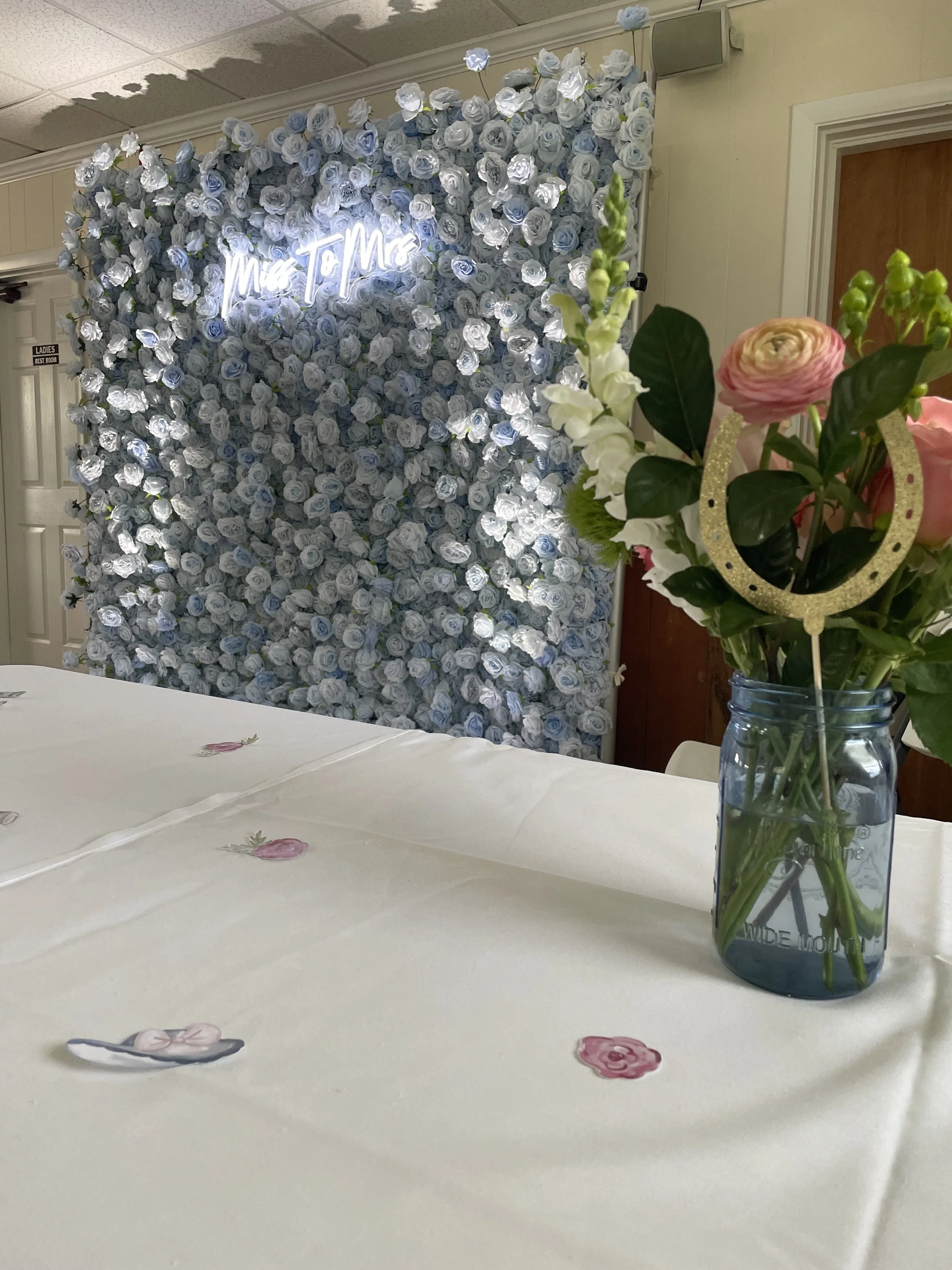 Jordan has the prefect soft tones of blue roses . Great for Christenings, baby showers, and bridal showers.
